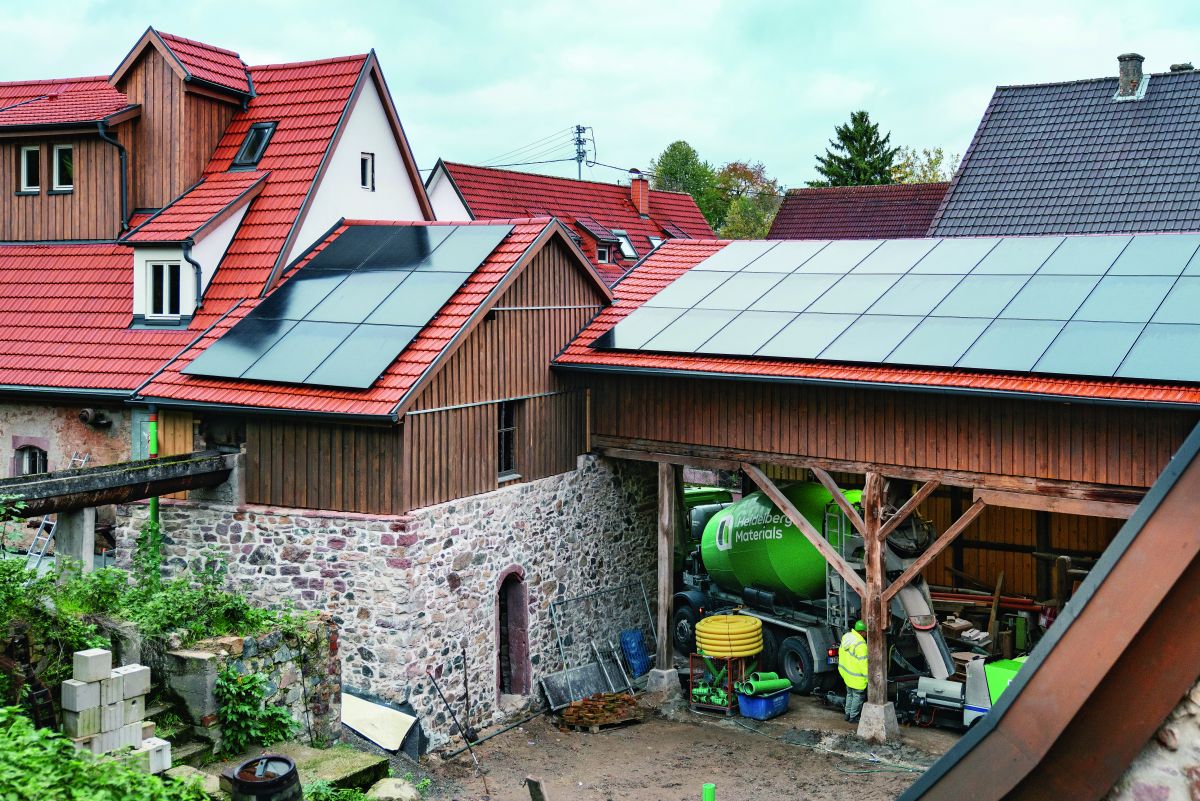 Dass Alt und Modern perfekt zusammenpassen können, beweist die ehemalige Merkel-Mühle im nordbadischen Hirschberg-Großsachsen. Für Nachhaltigkeit sorgt unter anderem der Calciumsulfat-Fließestrich Anhyment Slim von Heidelberg Materials.