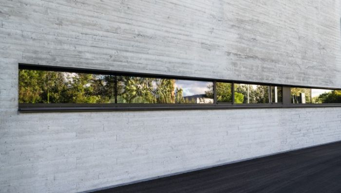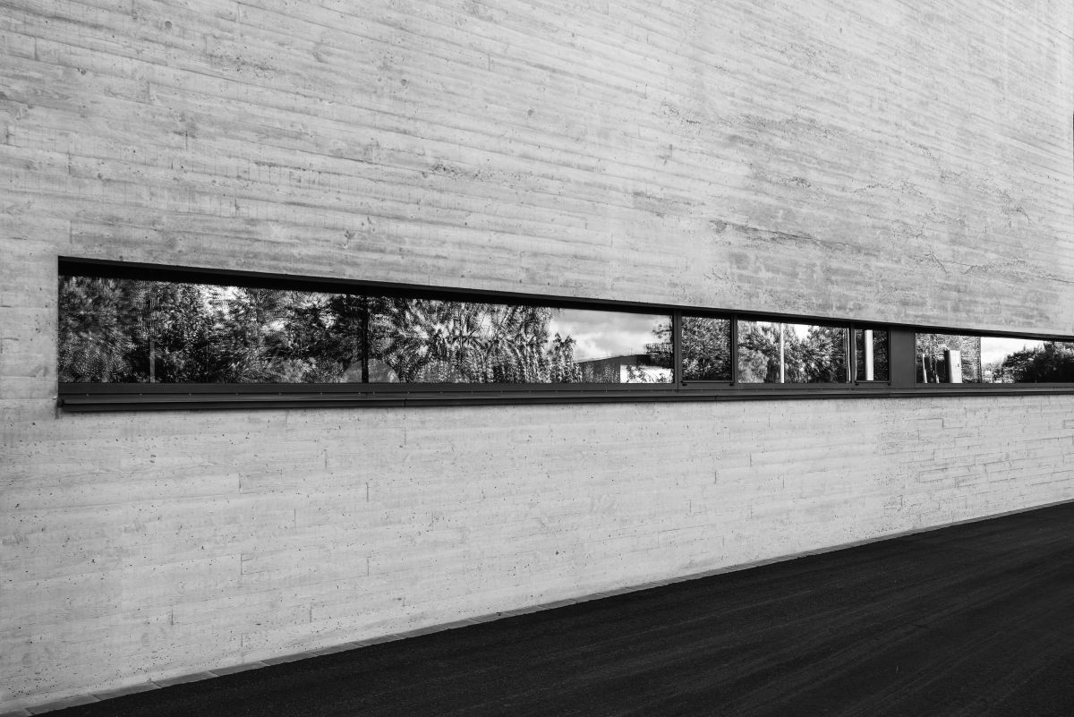 Die Architekten haben es geschafft, trotz des vorgegebenen Kostenrahmens der öffentlichen Hand, eine bemerkenswerte Architektur zu schaffen. Dies verdanken sie ihrer Philosophie von Augenmaß und Einfachheit, die sich sowohl im reduzier- ten Farb- und Materialkonzept als auch in den monolithischen Leichtbeton-Außenwänden zeigt.
