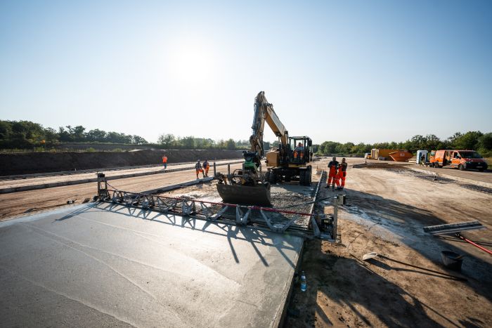 Beim Neubau der Fahrbahndecke an der Rastanlage Potzberg (A62) wurde zur Herstellung des Betons mehr Recyclingmaterial verwendet als üblich. Heidelberg Materials hat die Eigenschaften des Betons vor und während des Einbaus engmaschig geprüft.