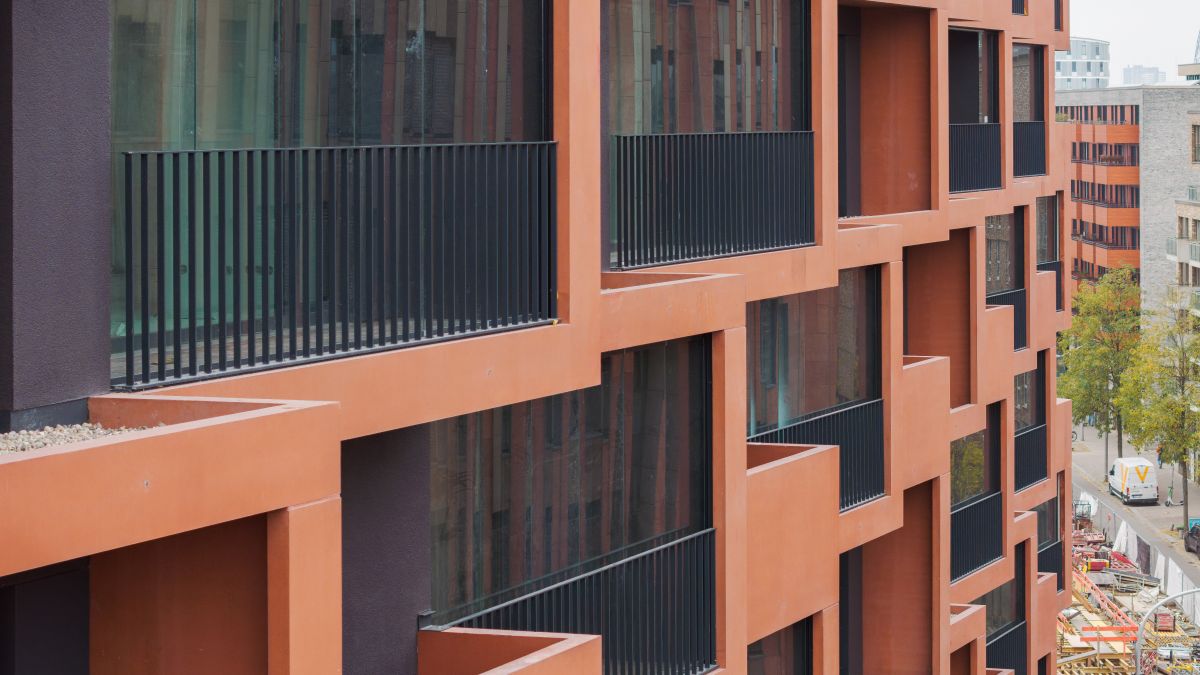 Das neue Wohngebäude „Eleven Decks“ in der HafenCity aus rotem Sichtbeton erreicht eine visuelle Verbindung zu den markanten roten Backsteinfassaden der Speicherstadt. Balkone und Loggien aus durchgefärbten Betonfertigteilen überziehen die Fassaden und setzen den architektonischen Akzent. Bei der Herstellung der Bauteile aus selbstverdichtendem Beton waren insbesondere die gleichbleibende Qualität, der Farbton und die Präzision eine Herausforderung.